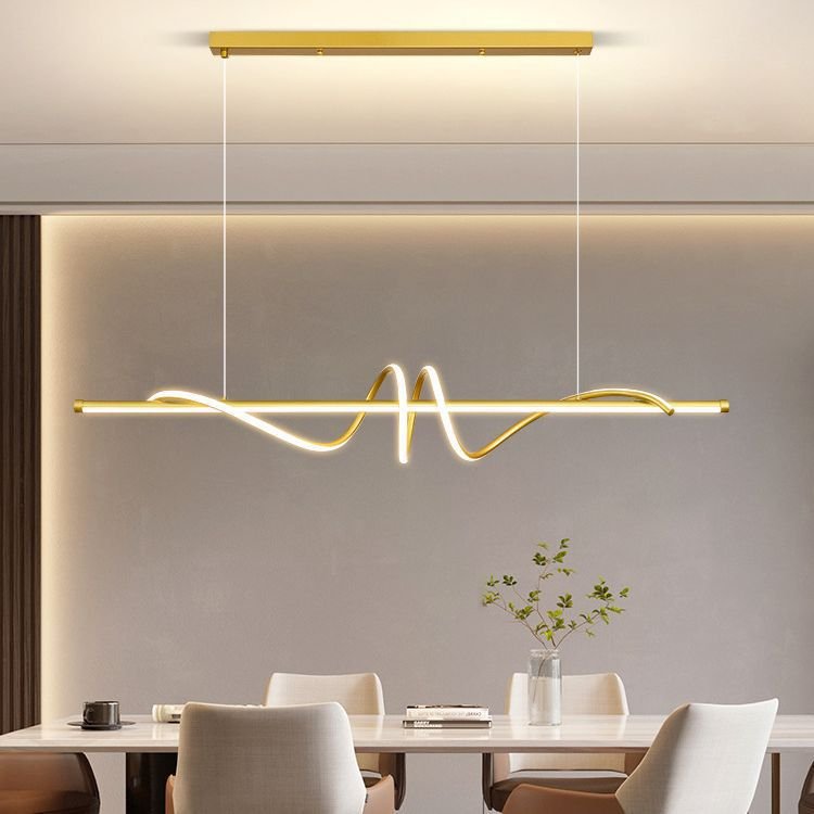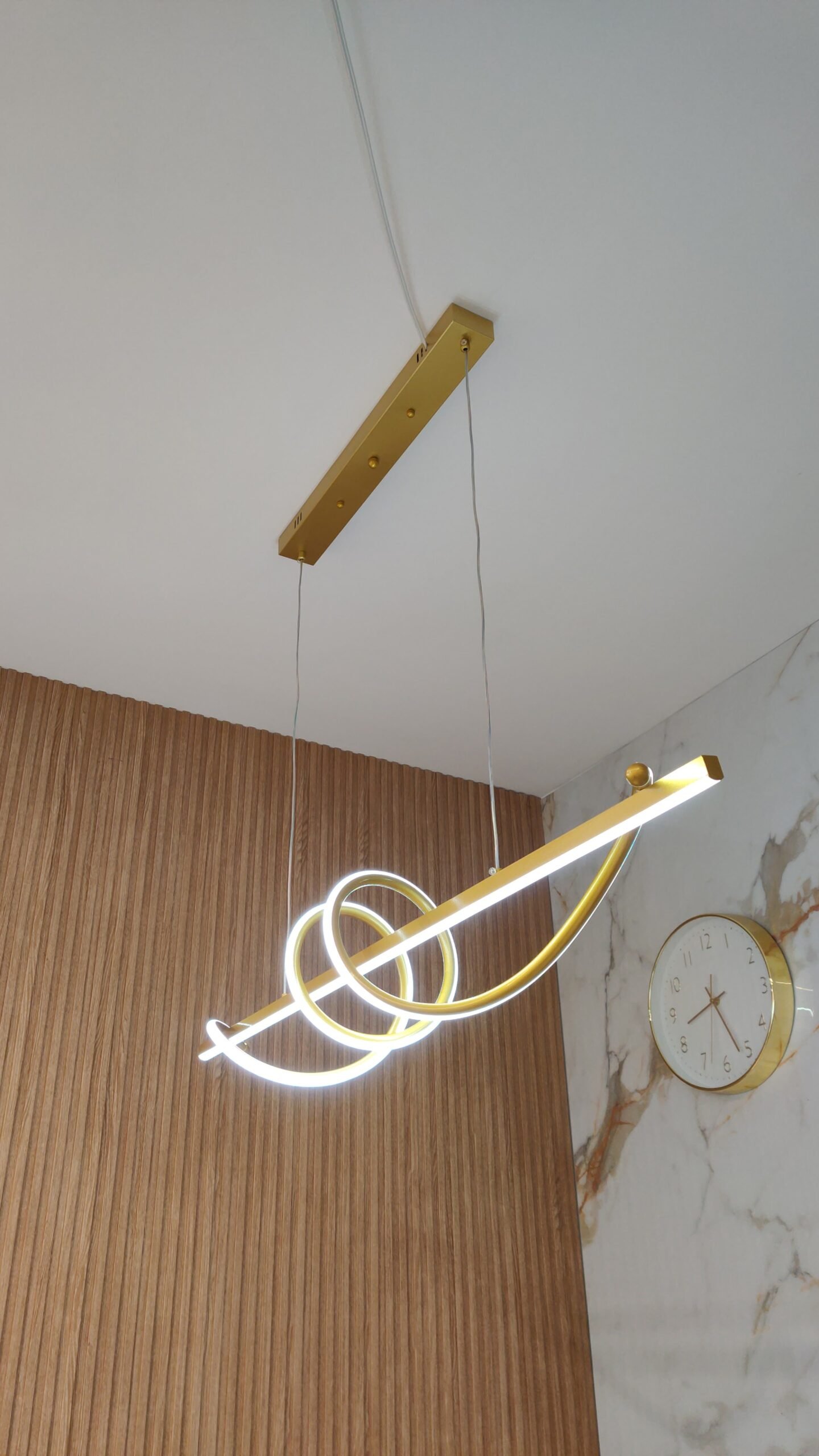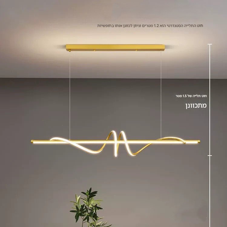 נברשת תלייה מודרנית ואלגנטית שמשדרגת כל חלל! פס תאורה מסולסל באורך 100 ס"מ, המשלב קווים ישרים עם עיצוב גלי עדין בצבע זהב יוקרתי.