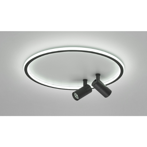הגוף העגול עם מסגרת שחורה יוצר מראה אלגנטי ונקי, בעוד שני הספוטים המתכווננים מאפשרים שליטה מדויקת בכיוון האור.