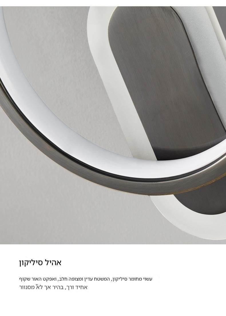 הוסף נגיעה אמנותית ומודרנית לקירות ביתך עם מנורת קיר מעוצבת ומינימליסטית. המנורה כוללת עיצוב ייחודי של טבעות משולבות, ומתאימה בצורה מושלמת לסגנונות מודרניים ועכשוויים. היא צמודה לקיר, חוסכת מקום ומוסיפה טאץ' עיצובי אלגנטי לכל חלל.
