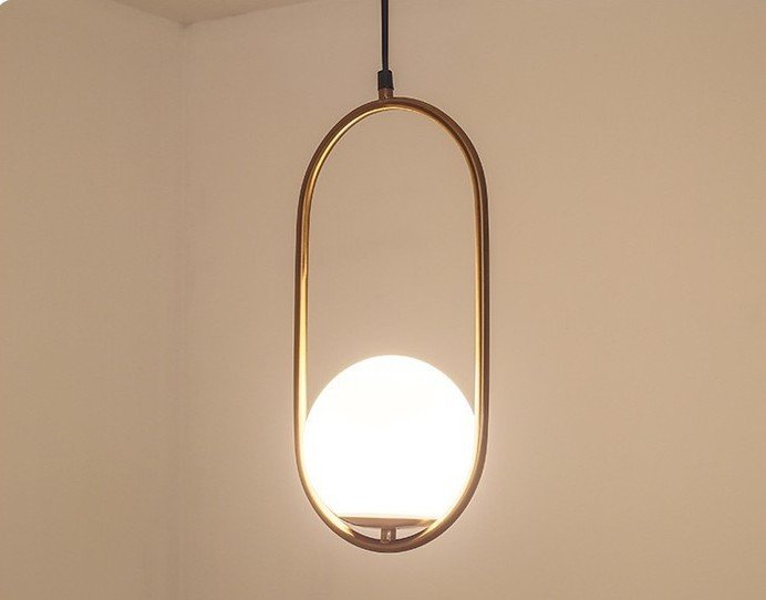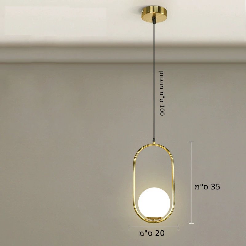 האיר את החלל שלך עם מנורת תלייה עכשווית, המשלבת עיצוב מינימליסטי ונקי עם מגע של יוקרה. גוף התאורה מעוצב מכדור זכוכית אופל חלבית המפיצה אור רך ואחיד, ומוחזק באמצעות מבנה ברזל אלגנטי בצורת אליפסה בגימור זהב עשיר. היא מתאימה באופן מושלם לתלייה מעל שולחנות אוכל, בפינות ישיבה או בסלון.