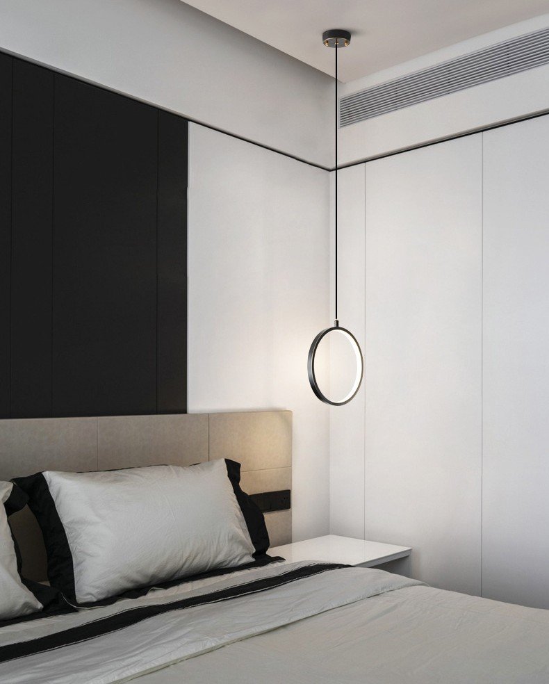 הוסף טאץ' של שיק עכשווי לכל חלל עם מנורת התלייה המינימליסטית והאלגנטית הזו. המנורה מעוצבת בצורת טבעת עדינה בצבע שחור מט יוקרתי, המאירה באופן שקט ואחיד. העיצוב הנקי והעגול של הנברשת הופך אותה לפתרון תאורה מושלם עבור פינות חדרים, מסדרונות, או כפריט דקורטיבי מעל שידת לילה או פינת קריאה.
