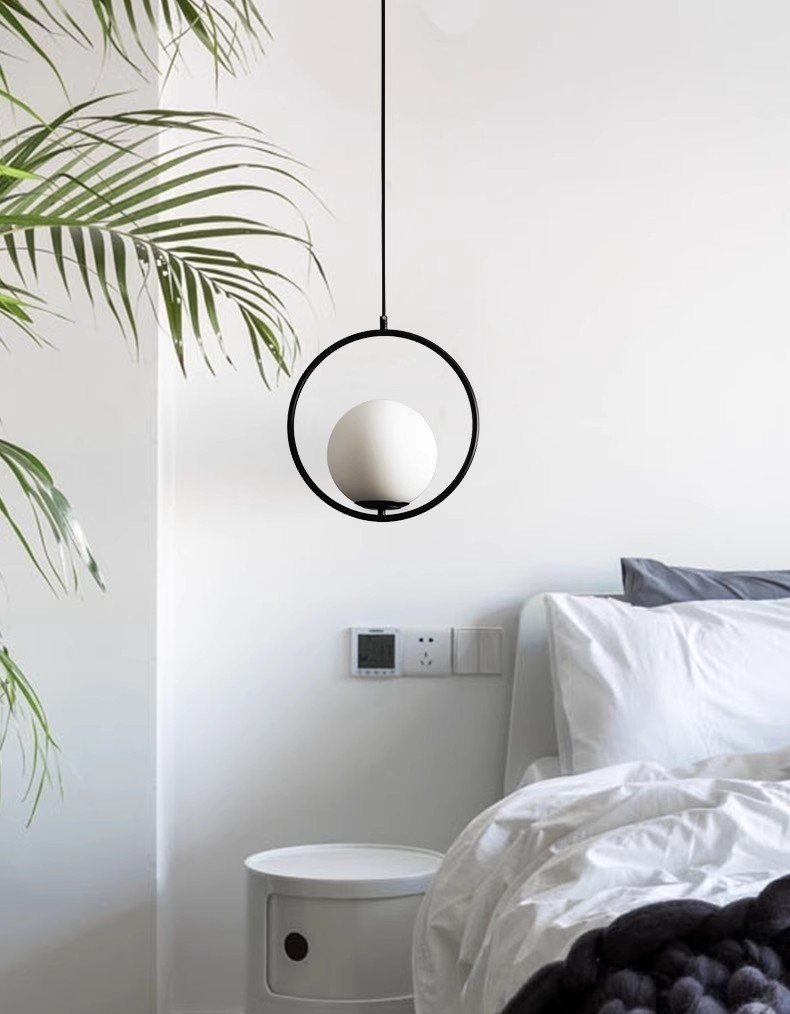 האיר את החלל שלך עם מנורת תלייה עכשווית, המשלבת עיצוב מינימליסטי ונקי עם מגע של יוקרה. גוף התאורה מעוצב מכדור זכוכית אופל חלבית המפיצה אור רך ואחיד, ומוחזק באמצעות מבנה ברזל אלגנטי בגימור שחור עשיר. היא מתאימה באופן מושלם לתלייה מעל שולחנות אוכל, בפינות ישיבה או בסלון.
