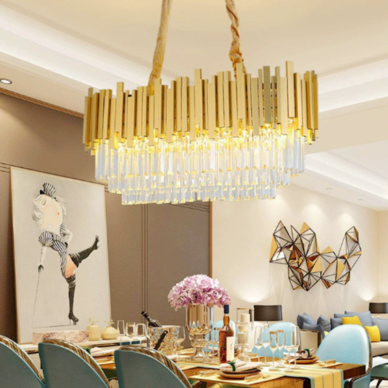 הוסף טאץ' דרמטי ויוקרתי לחלל שלך עם נברשת הקריסטל המרשימה הזו. הנברשת מעוצבת בצורת מלבן, ומשלבת באופן מושלם מוטות ברזל בגימור זהב יוקרתי עם שפע של קריסטלים מנצנצים התלויים בשכבות. העיצוב הייחודי יוצר אפקט של מפלי אור וברק, והופך את הנברשת לפריט עיצובי מרכזי בכל חלל, מסלונים ועד פינות אוכל.